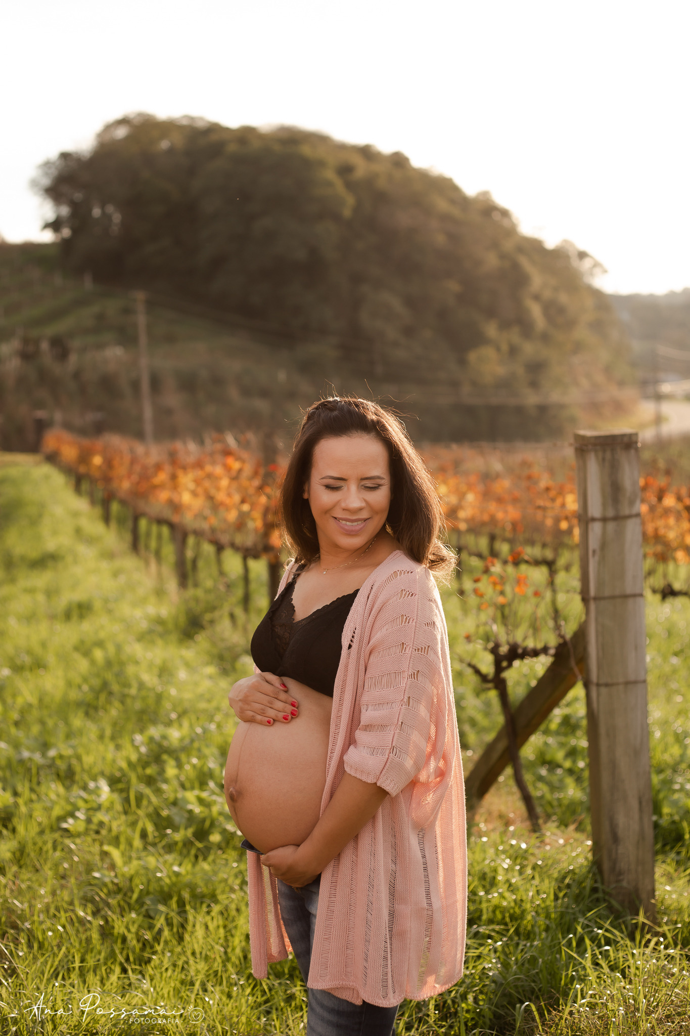 Depois procuramos então opções pela cidade. Pode ser em um clube que vocês sejam sócios ou em um parque aberto ao público ou ainda como estamos situados aqui na cidade de Bento Gonçalves partimos para opções como vinícolas e cantinas. Também podemos buscar hotéis e pousadas que permitam os ensaios fotográficos e que são boas opções quando o seu ensaio de gestação coincidir por exemplo com o inverno.