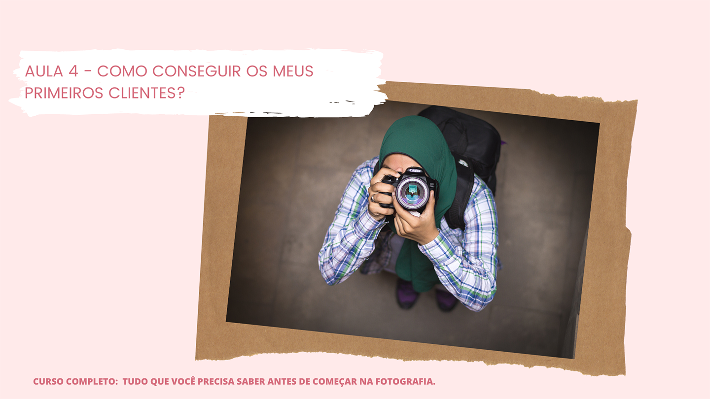 O objetivo deste curso não é ensinar você a fotografar, mas sim te mostrar os primeiros passos para planejar a sua entrada no mundo da fotografia. É destinado para pessoas que ainda não trabalham com fotografia, atualmente estão atuando em outros segmentos e estão em busca de uma nova oportunidade. Ou para você que fotografa apenas como hobby e gostaria de fazer deste hobby um negócio.